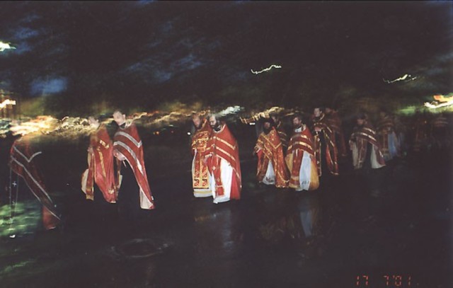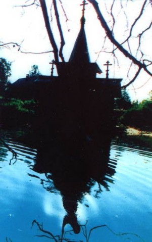 Этот снимок сделан любительской камерой послушником Андреем во время посещения Его Святейшеством Святейшим Патриархом Алексием II Ганиной Ямы - места уничтожения честных останков царя - страстотерпца Николая II и Его многострадальной Семьи 23 сентября 2000 года.